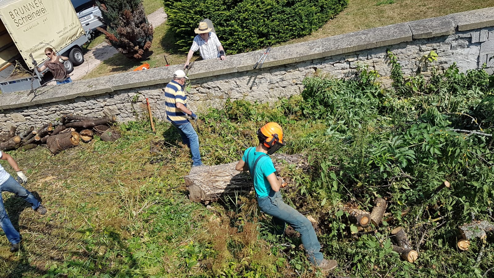 Vielen Dank an die Helfer, die beim Arbeitseinsatz das Grünzeug neben der Zehntscheuer bezwungen haben! Es wurde gesägt, geschnitten, gefahren – und verdientermaßen auch gegessen und getrunken. Herzlichen Dank!