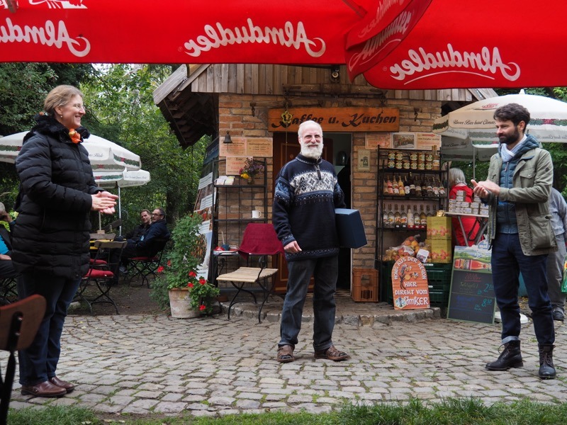 Die Ausflügler radelten unterdessen durch den Kammerforst und der Pfinz entlang zur Waldmühle nach Rußheim. Nach einem Mittagessen unter einem Zeltdach erläuterten die „Freunde der Waldmühle“ Wissenswertes über die Geschichte der Waldmühle, zum ökologischen Konzept, zur Sanierung und zur Nutzung als Museum. Damit die Führung wie die gesamte Veranstaltung coronakonform ablaufen konnte, lag das Augenmerk auf der Außenanlage mit dem Mühlrad oder dem wildromantisch angelegten Bauerngarten. Nach einem Kaffee und leckerem Kuchen oder geistreicher Stärkung ging es wieder auf den Rückweg. Herzlicher Dank an Maria Brandes und Reiner Brunner für die Planung und Vorbereitung dieses gelungenen Vereinsausflugs!