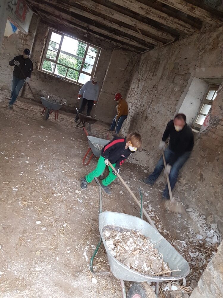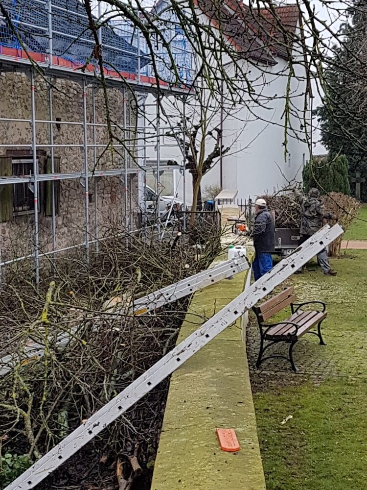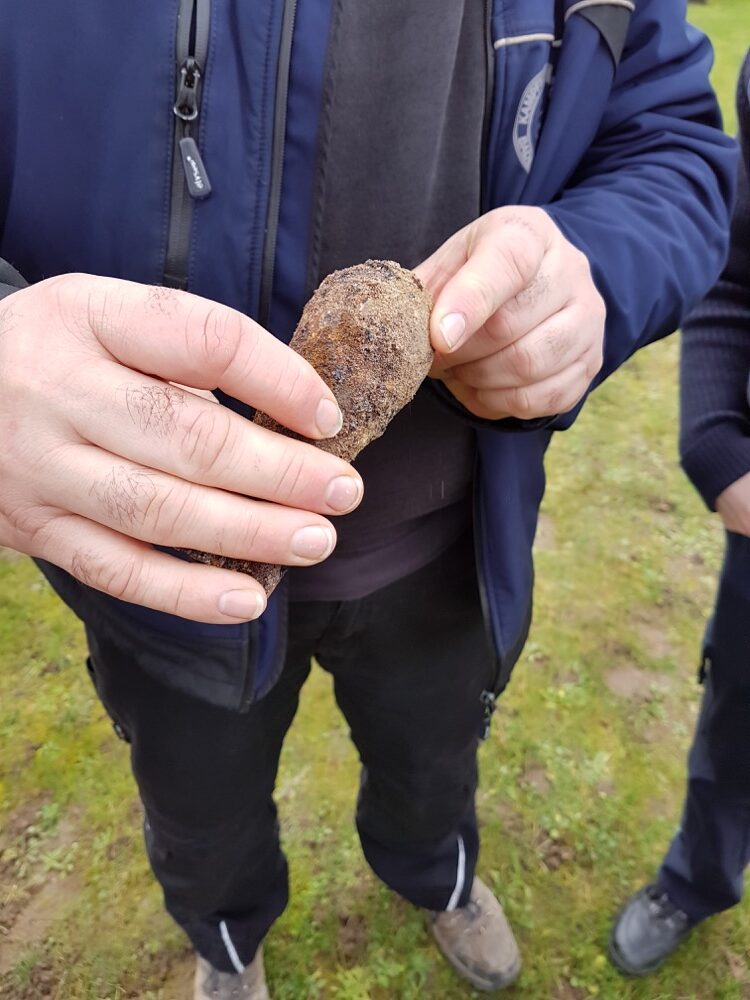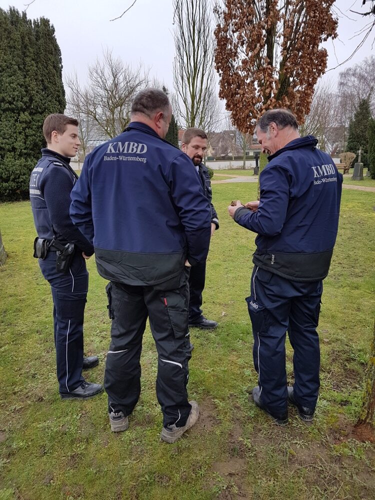 Langweilig wird es an der Zehntscheuer nie beim Schutt entsorgen, Tonziegel lagern, Sträucher schneiden – aber so spannend wie an diesem Samstag hätte es auch nicht sein müssen. Werner Esswein – einer der fleißigen Helfer, die noch nie einen Einsatz verpasst haben – fand im Schutt beim Ausräumen eine handgroße Mörsergranate. Zunächst wurde sie abseits gelegt, die Polizei sperrte das Gebiet ab, bis der Kampfmittelbeseitigungsdienst gekommen war. Die Spezialisten konnten schnell Entwarnung geben und nahmen das Teil mit.