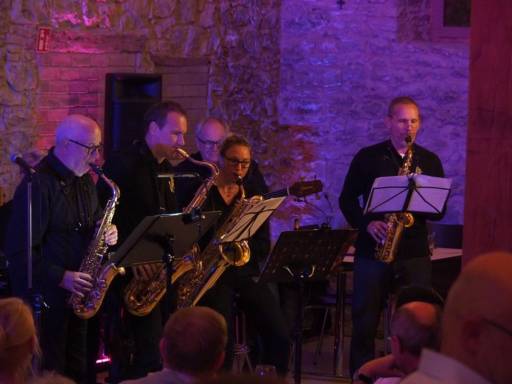 Mit der Chili-Schote hat ChillyJazz nichts zu tun – aber mit wunderbar entspannten, „gechillten“ Musik! Davon konnten sich die zahlreichen Besucher in der vollbesetzten Zehntscheuer 1737 überzeugen. In der vereinseigenen Kulturreihe „Live in der Zehntscheuer“ begeisterten die Musiker Thomas Ries (Piano + Orgel), Wolfgang Wittke (Saxophone + Klarinette), Uwe Gretenkord (Bass), Thomas Winkler (Drums + Percussion) und Heidi Gretenkord (Gesang) das Publikum mit ganz eigenen Variationen von Jazz-Klassikern und Popsongs. Dazu bereicherte das Saxophonquartett 3+1, dem neben Wolfgang Wittke noch Armin Neff, Jürgen Weis und Pamela Ihle angehören.