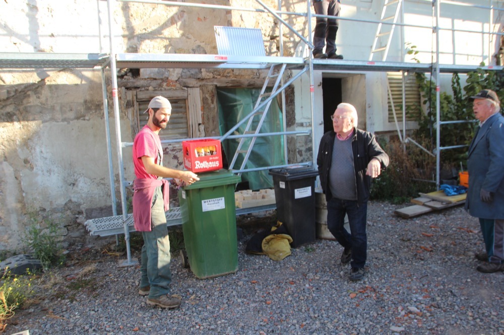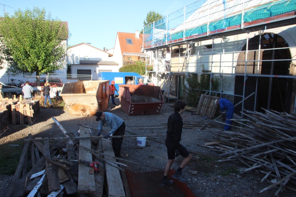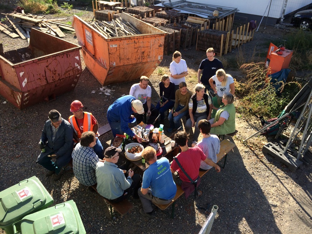 Der besondere Dank der Woche geht an Maria Brandes, die nicht nur auf der Baustelle kräftig mit anpackt, sondern auch für die leibliche Stärkung. So gab es nach der Kaffeepause (diesmal u.a. mit selbstgebackenem Kuchen von Stefanie Grass) nach getaner Arbeit Fleischküchle mit Kartoffelsalat!