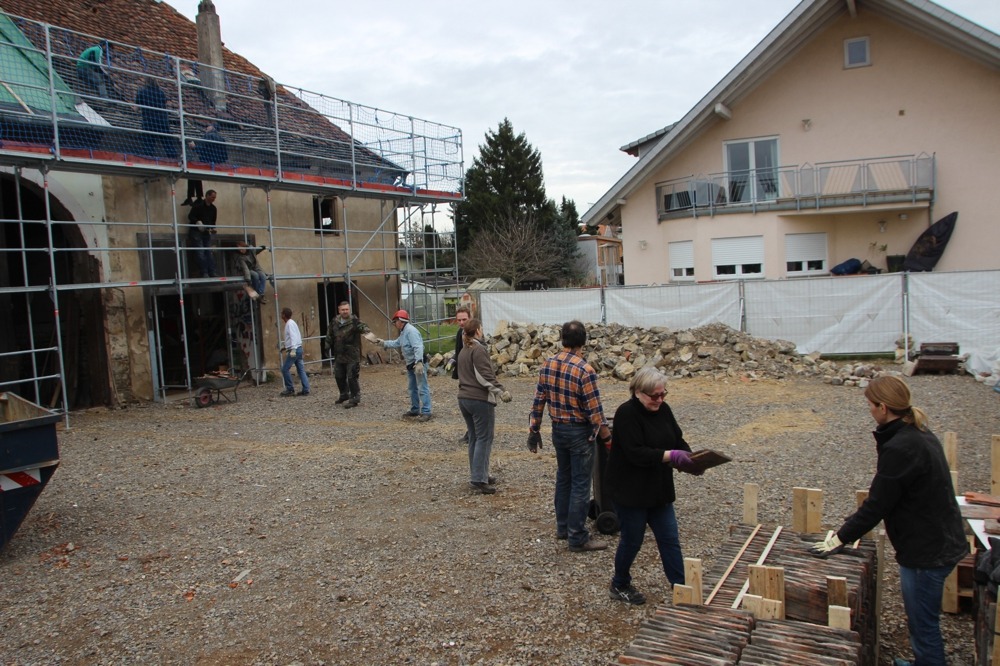 In den Jahrzehnten vor und nach der Jahrtausendwende war das barocke Profangebäude stark vernachlässigt und dem Verfall preisgegeben worden. Durch breites bürgerschaftliches Engagement konnte der bereits genehmigte Abriss 2017 im letzten Moment verhindert werden. Für die danach erfolgte Instandsetzung hat die Bürgerstiftung unzählige Arbeitseinsätze mit ehrenamtlichen Helfern organisiert, Fördergelder akquiriert, in der Bevölkerung ein neues Bewusstsein für das historische Gebäude geschaffen und zudem wichtige Partnerinstitutionen gewonnen. Dazu zählen zuvorderst die Gemeinde Karlsdorf-Neuthard und das Land Baden-Württemberg, außerdem die Deutsche Stiftung Denkmalschutz und viele weitere Firmen und Institutionen aus nah und fern. Die Rettung und Sanierung der Zehntscheuer 1737 wurde so zu einer echten Gemeinschaftsleistung.